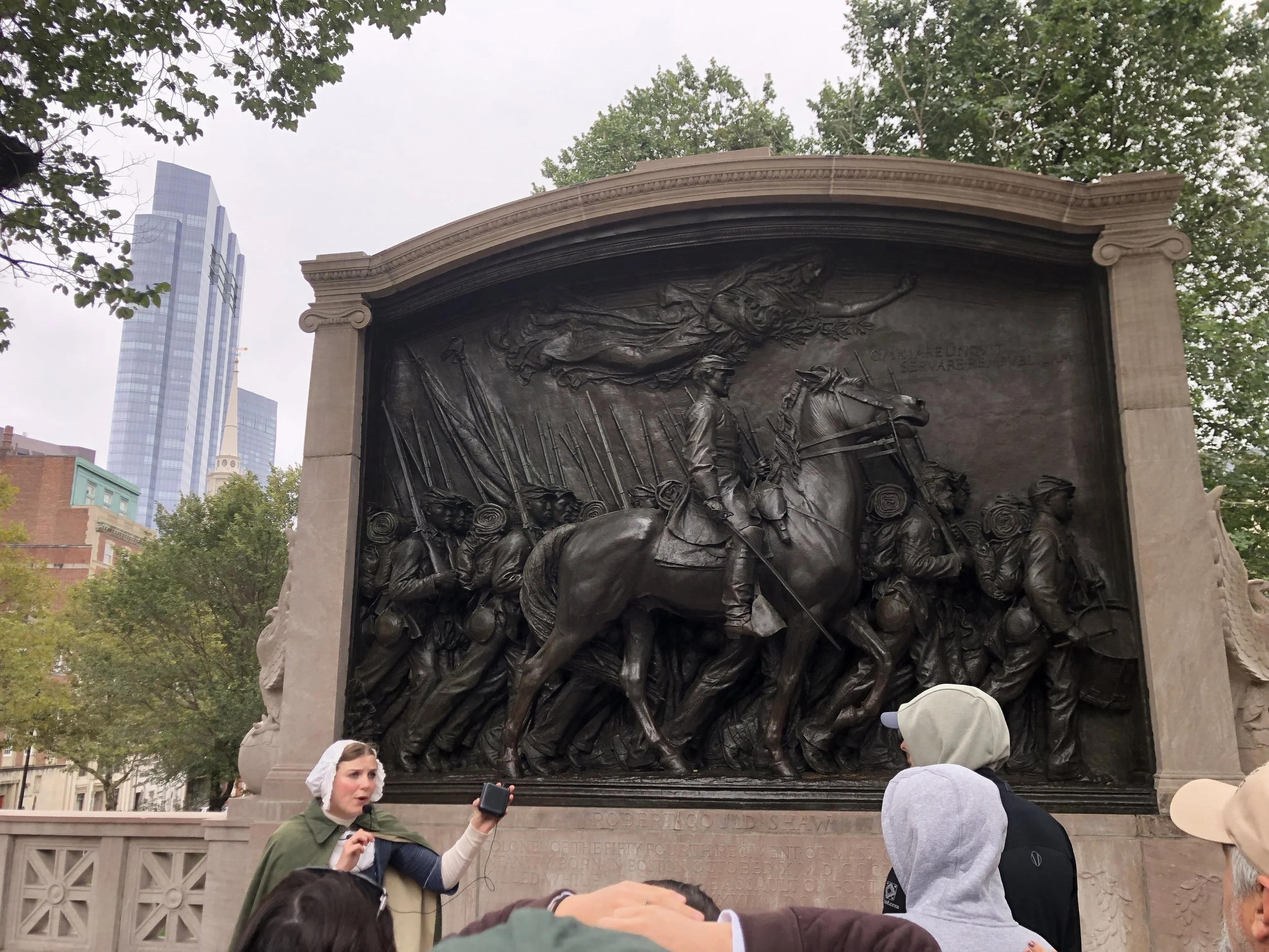 We paused at the Massachusetts State House, and directly behind us, saw the Robert Shaw Memorial commemorating the black troops of the 54th regiment in the Civil War. Have you seen the movie, Glory?