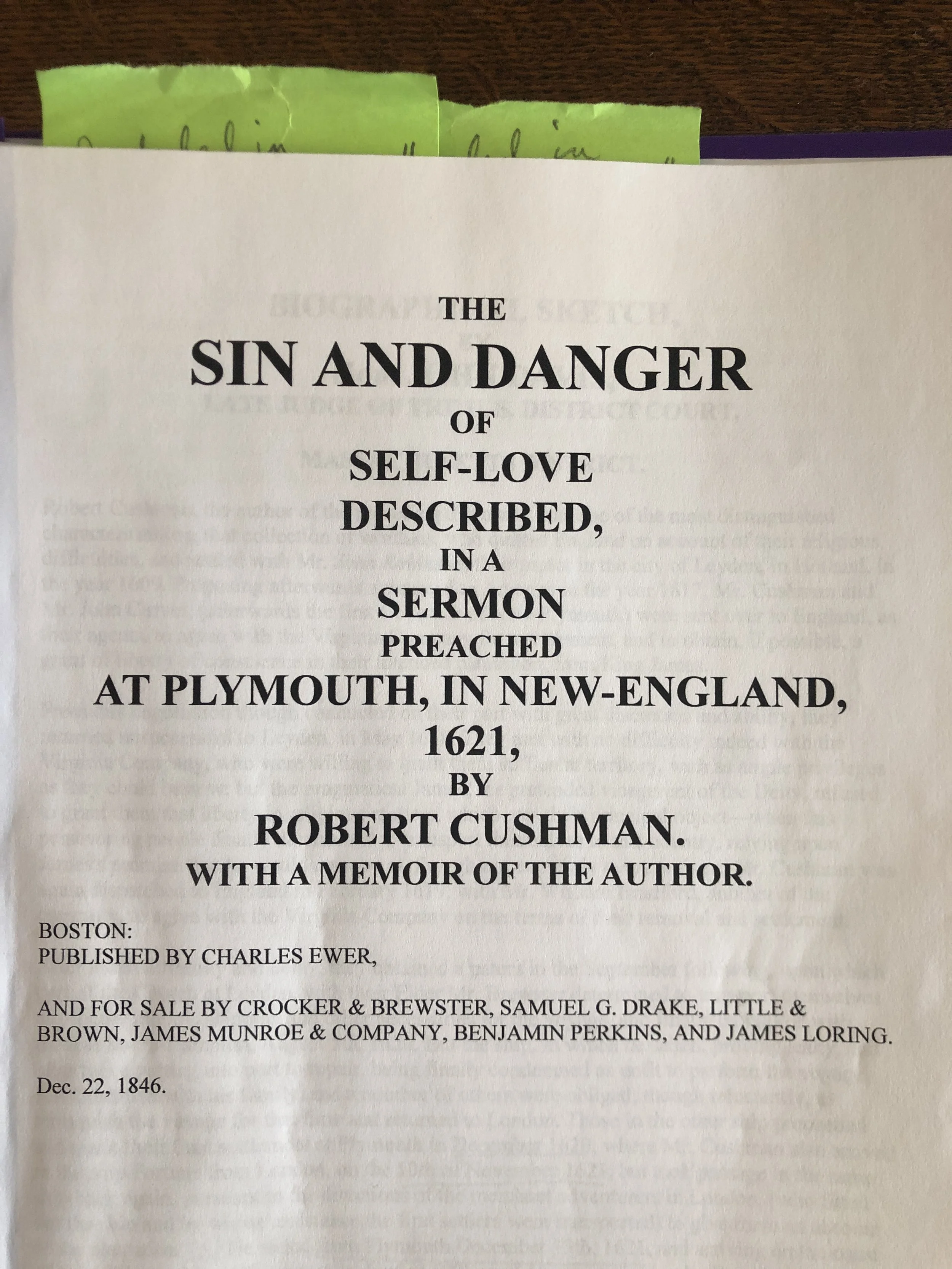 Another family member of special importance to us is Robert Cushman. He was a member of the original pilgrim group who stayed back in Leyden, Holland to arrange the finances and trade agreed upon by the “Adventurers.” (investors who funded the voyage of the Mayflower.) Sailing on the Anne, he and his son, Thomas, made a visit to Plymouth in December, 1621, and when there, he preached the “first sermon preached in New England.” My hunch is that it wasn’t the “first” sermon since Elder William Brewster would have preached many sermons that first year, but perhaps it is the first one that has been saved. At any rate, my girls and I enjoyed reading the sermon together when riding in the car. This sermon, “Sin and Danger of Self Love,” is just as pertinent today as it was then. It is based on 1 Corinthians 10:24 “Let no man seek his own; but every man another’s wealth.” (Let no man seek his own good, but that of his neighbor. New American Standard version) Robert left his son, Thomas in the care of governor William Bradford and returned to Leyden. There’s more to the story, because after several years, Thomas grew up and married our Mary Allerton. Thomas became the Elder of the group when William Brewster died and he and Mary raised their 8 children there in the Plymouth area. Mary was the longest surviving passenger of the Mayflower. (Died at the age of 83)