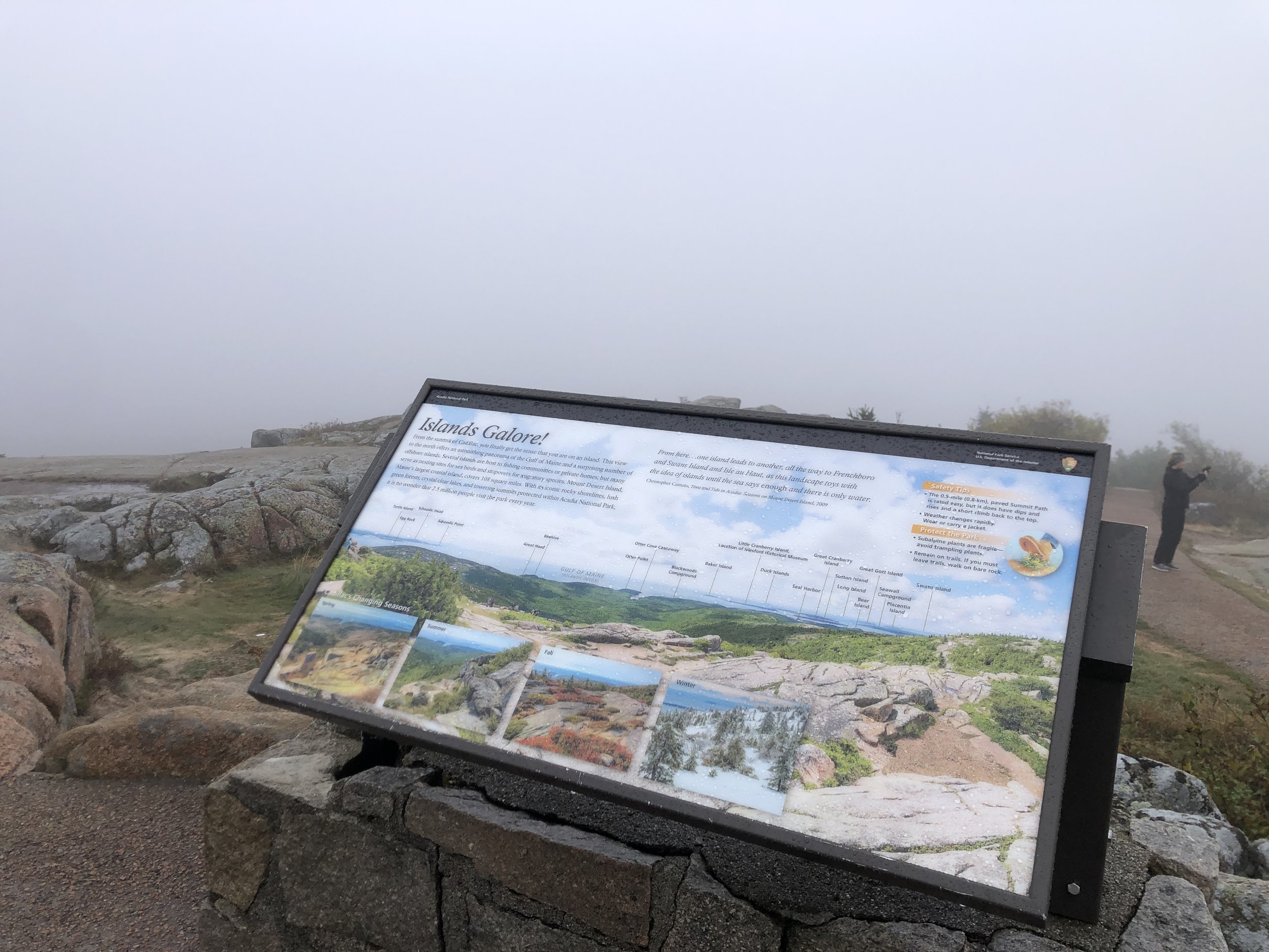 Acadia NP and nearby Bar Harbor were mostly lovely but the famous view from atop Cadillac Mountain was a bit cloudy, and so cold, but that gave us reason to laugh as we ran back to the warm car. We had to catch our view a little lower down the hill.