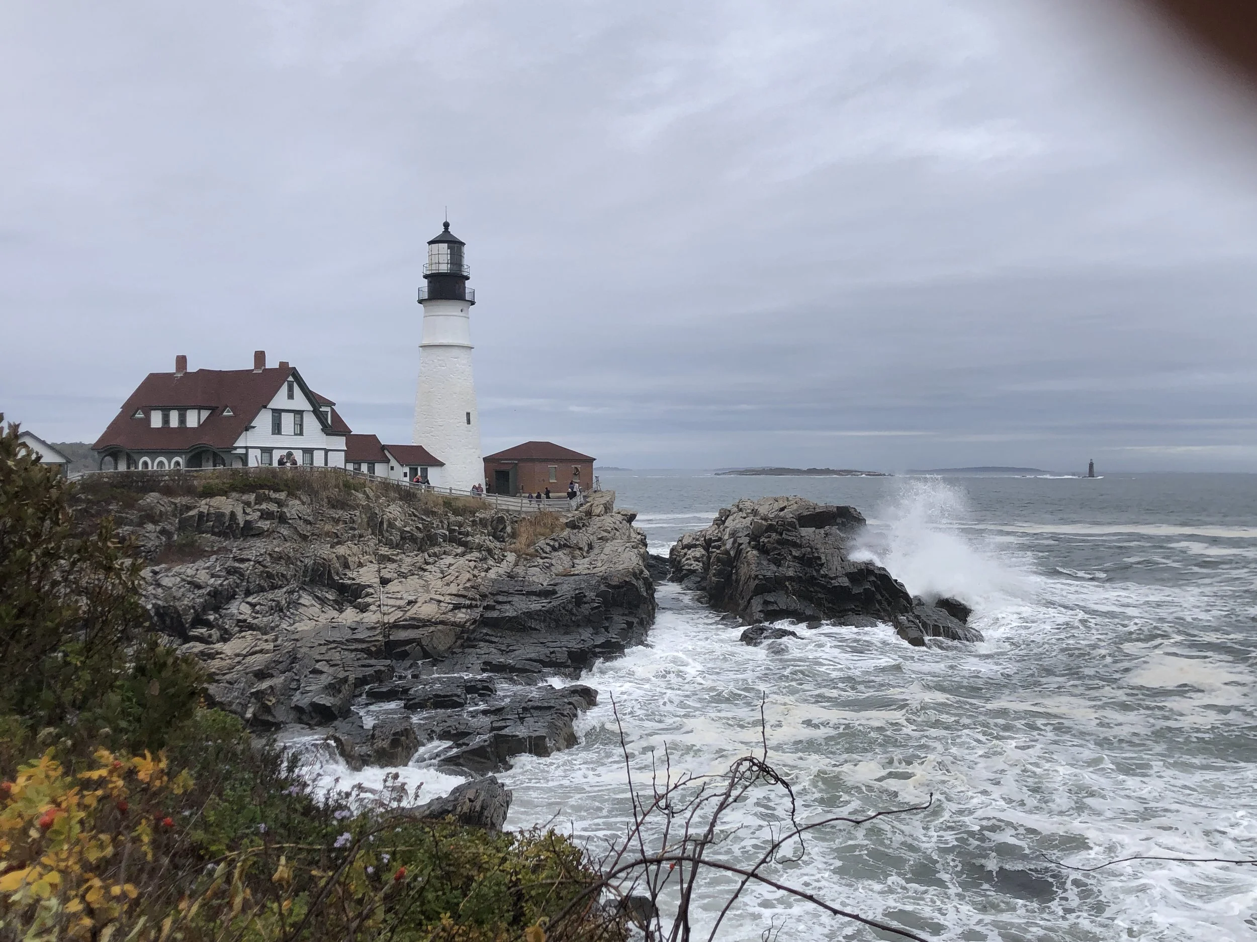 Continuing north, we arrived in Portland, Maine, stocked up on groceries for the next few days where after a short drive into the mountains, we stayed in a lovely home amongst the fall colors overlooking a lake. The light intermittent rain didn’t prevent kayaking, and a visit to the picturesque Portland Head Light lighthouse which inspired a painting which is still underway.