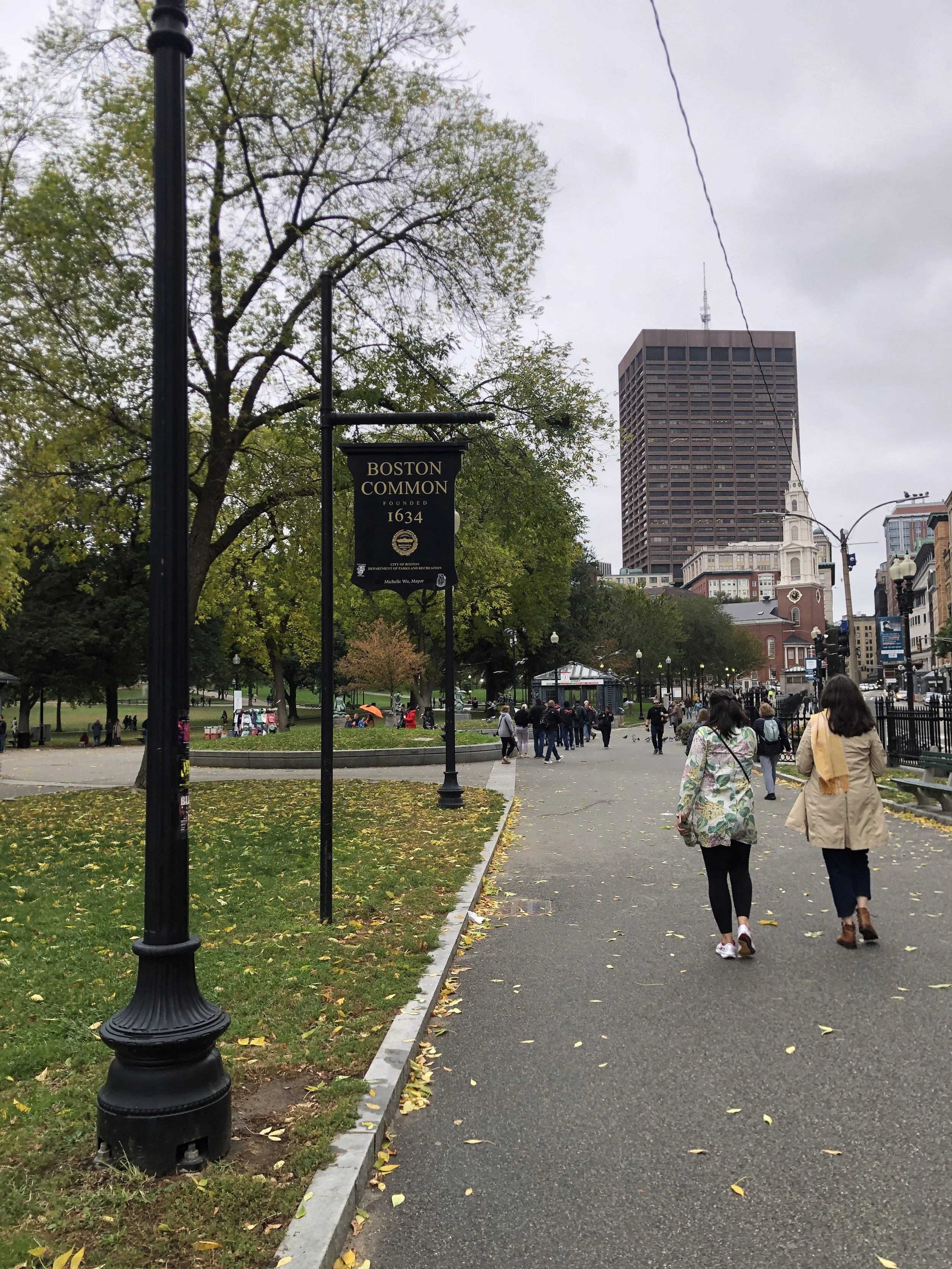 No doubt you’ve heard of The Freedom Trail walking tour. With a guide, we worked our way through historic sites, starting with the larger than expected Boston Common where so many important, and not so important things happened, including the staging of the British redcoats as they set forth to Lexington and Concord in 1775. The oldest public park in America, the Common was originally a cow pasture till 1830 when the Beacon Hill residents didn’t want them in their backyard. The Frog Pond, cemented now is a wading pool in the summer and ice rink in the winter.
